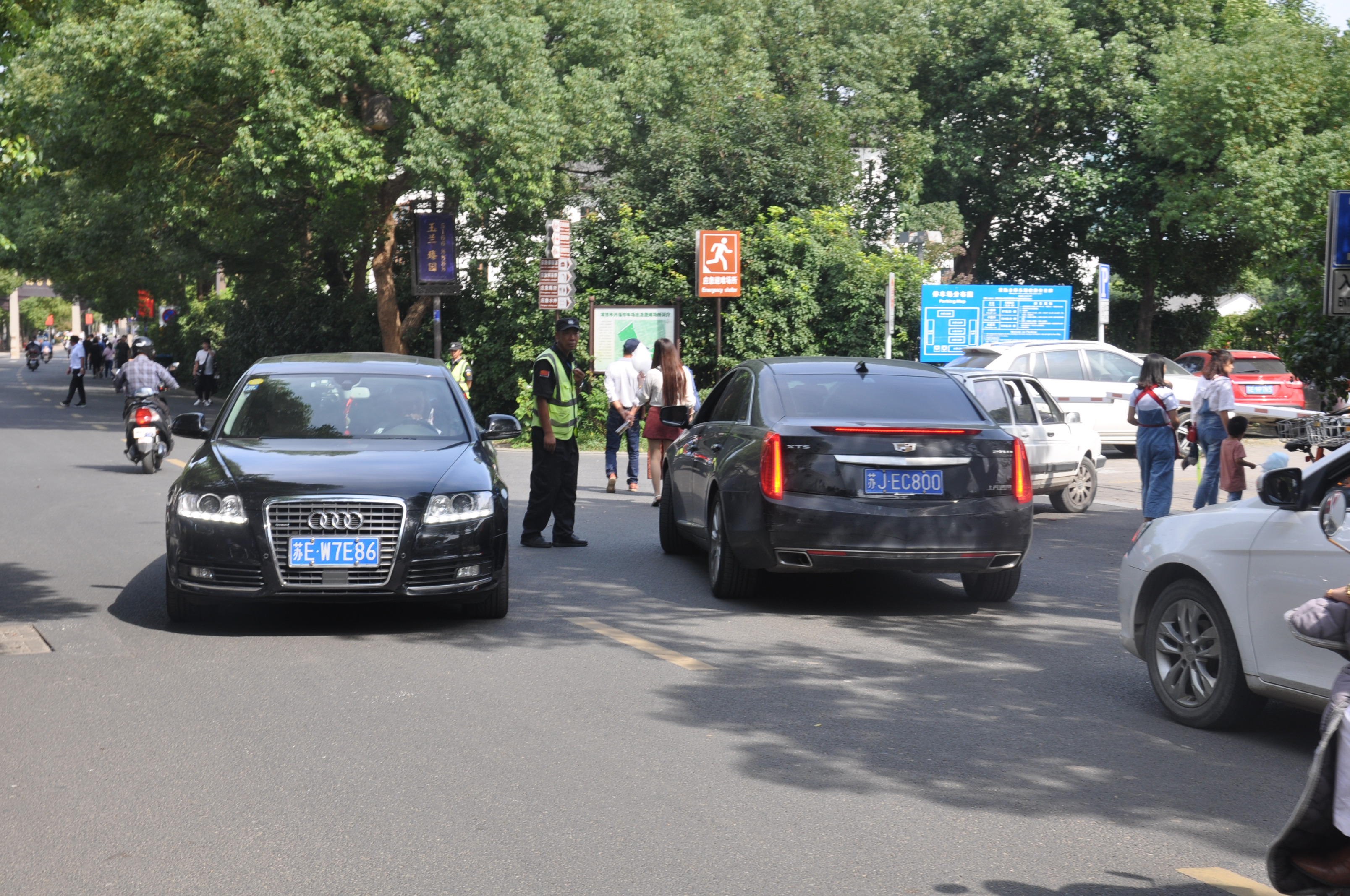 歡聲笑語的游客,車水馬龍的道路,節(jié)日期間各景區(qū)都是一片人滿為患的景象,保安員們站在十字路口,走在觀光道上,吹響嘹亮的口哨聲,揮動瀟灑的交通指揮手勢,指引著游客和車輛的有序進出,維護著景區(qū)的治安和交通秩序。