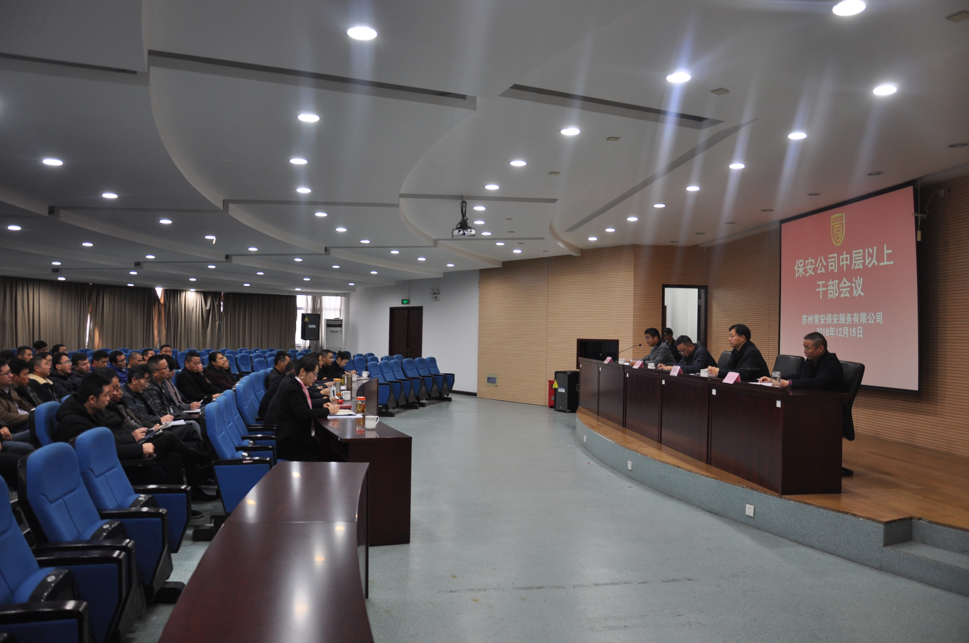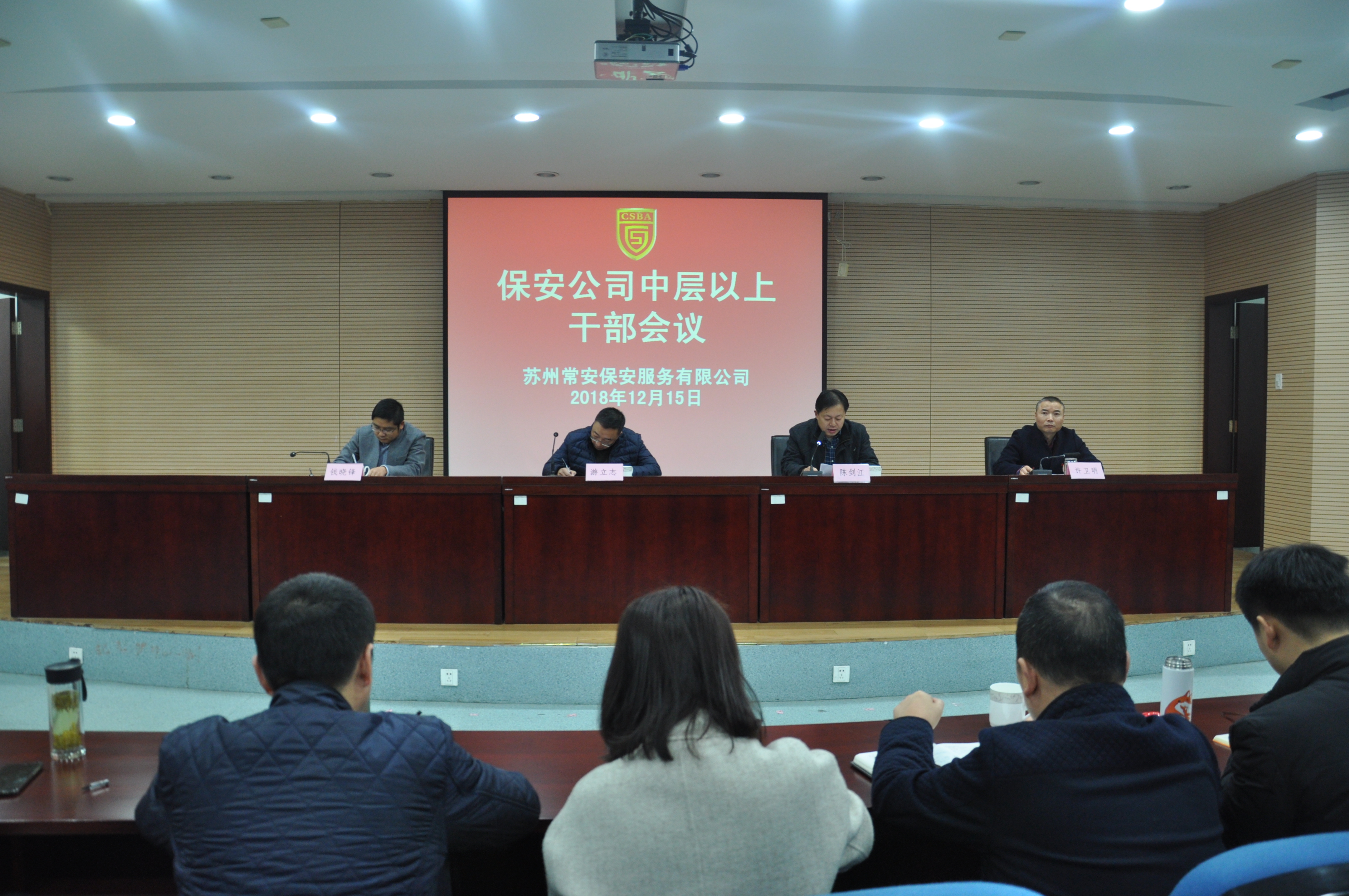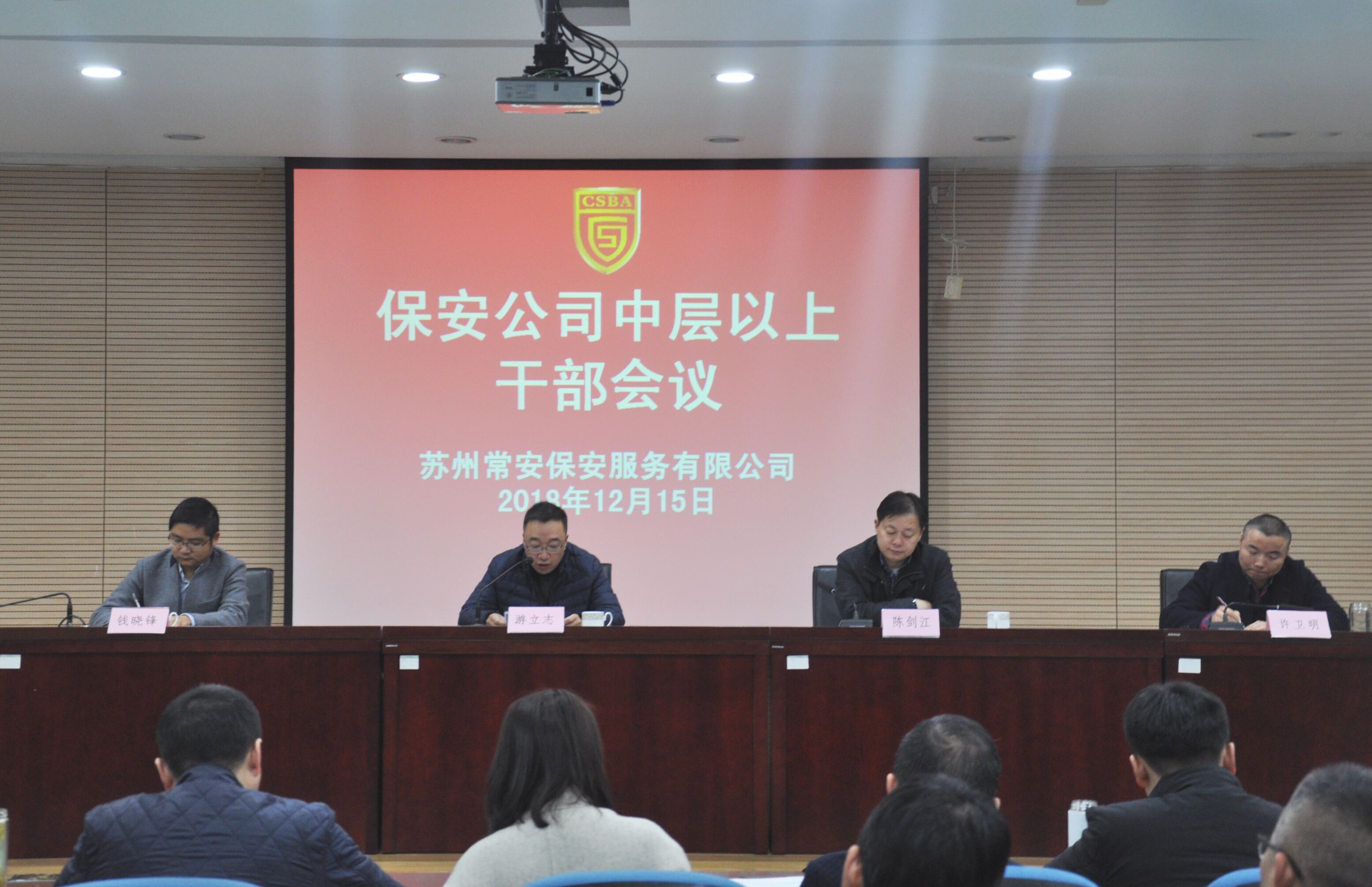 2018年12月15日,蘇州常安保安服務(wù)有限公司在三樓報(bào)告廳舉行中層以上干部會(huì)議,江南集團(tuán)黨委班子相關(guān)成員、保安公司黨政領(lǐng)導(dǎo)班子和中層以上干部60多人參加會(huì)議。