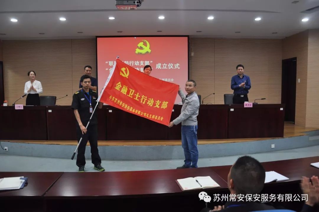 為深入貫徹落實(shí)黨的十九大精神,培育國企黨建品牌,積極營造“不忘初心 牢記使命”主題教育氛圍。 蘇州常安保安服務(wù)有限公司黨總支部于5月10日舉行“聯(lián)勤聯(lián)防”、“金融衛(wèi)士”行動(dòng)支部成立儀式暨“黨旗引領(lǐng)悟初心”主題黨日活動(dòng)。